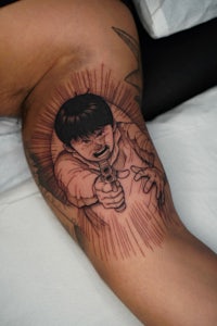 Specializes in pop culture/cartoons, Japanese traditional, illustrative as well as black and grey realism.